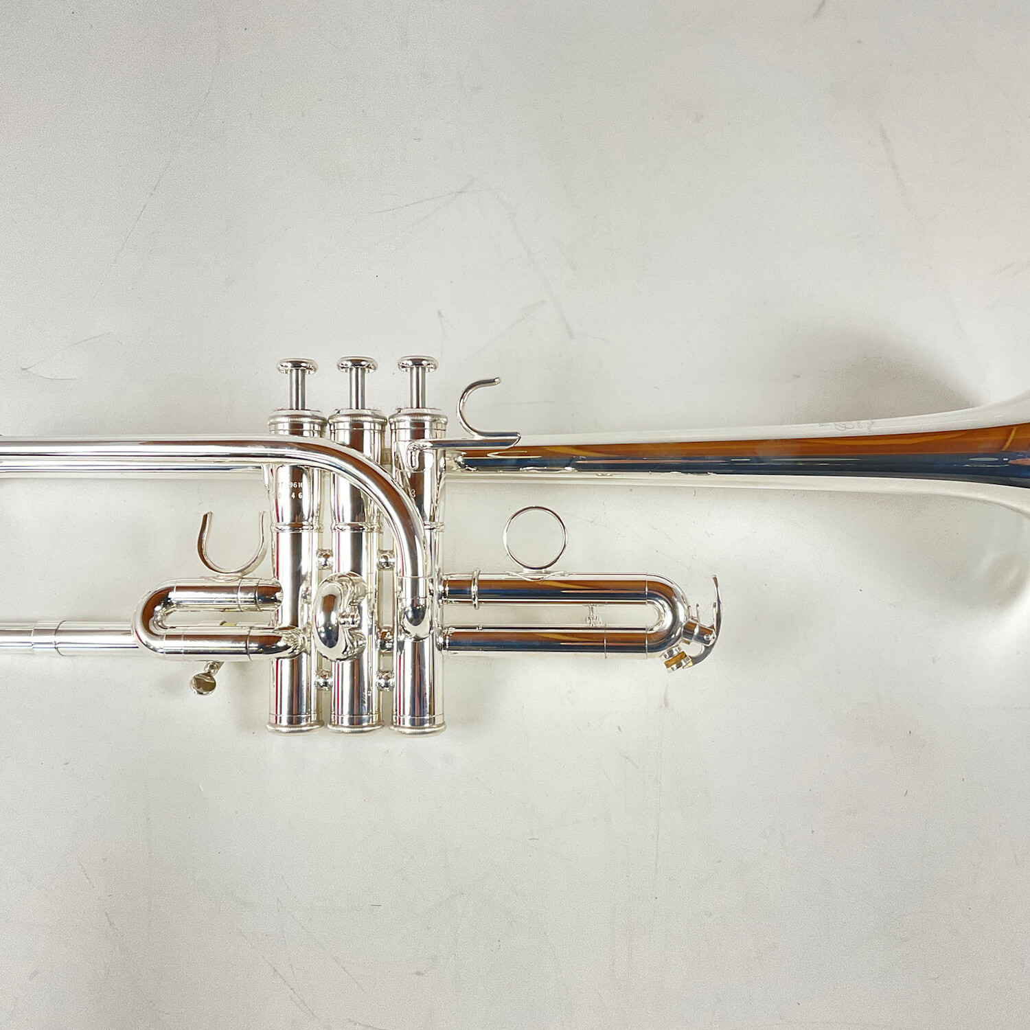 Used Yamaha YTR-9610S Eb/D trumpet in silver plate. Instrument is excellent, like-new condition. Includes both Eb and D bells and slides and original Yamaha case.